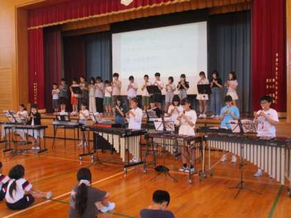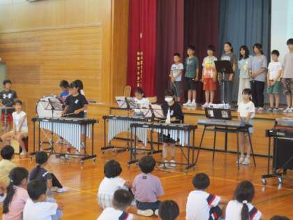 今日のいきいきウェンズデーに音楽で学習している「ラブァ−スコンチェルト」の合奏を全校に発表しました。パートごとの音色が重なって素敵なハーモニーでしたよ!