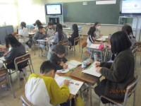 5年生は総合的な学習の時間で地域の高齢者施設からゲストティーチャーをお招きして、お話を聞いたり、「高齢者疑似体験」をしたりしました。