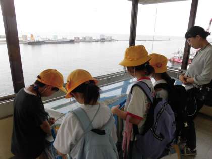 富山港展望台では、海の近くの様子を見ることができました。海の近くには何があるのかを詳しく見ていました。