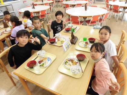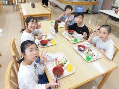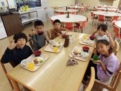 食事の様子です。野菜が苦手な子供も、食べきろうとチャレンジする姿が見られました。