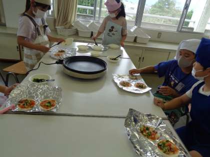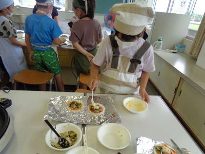 みんなで育てた野菜を使って、「かんたん!野菜ピザ」を作りました。