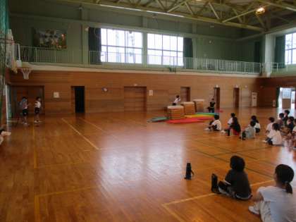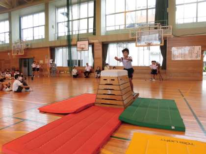 跳び箱にチャレンジしました。フォームがきれいで、かっこよくポーズを決めていました。