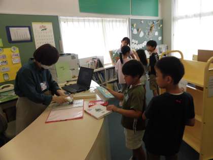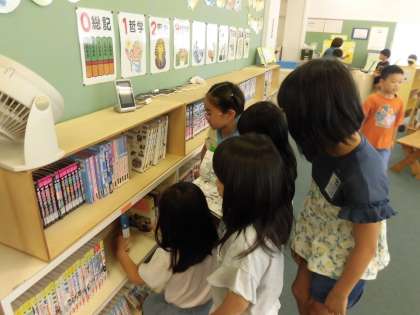 夏休みに読むための本を図書室で借りてきました。「夏休みは長いから、長い小説に挑戦してみよう」と夏休みへの思いをふくらませて選んでいました。夏休み中で様々な本に触れ、読書を楽しんでほしいと思います。