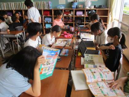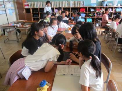 学習発表会に向けて少しずつ動き始めました。今回は、劇の台本をみんなで考えることにしました。それぞれのチームに分かれ、みんなで意見を出しながら構成やセリフを考えてました。