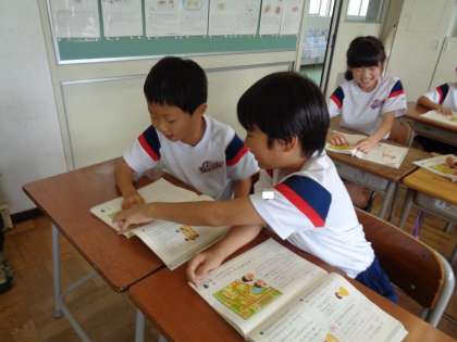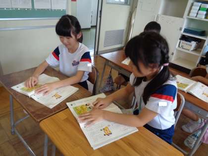 言葉だけで道案内をするとき、どのように説明すると分かりやすいのかを考え、友達と対話の練習をしました。