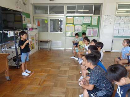 昨日の学活は、クイズ係さんが集会を開いてくれました。クロムブックでクイズを出題したり、みんなで、生活科室の中に隠れているクイズを探したりしました。インタビューコーナーでは、「宝さがしみたいで楽しかった」など感想を言っていました。みんな夢中で楽しんでいました。