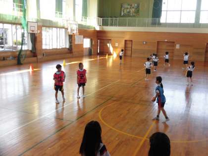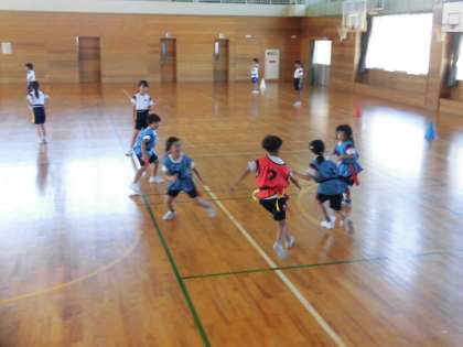 3年生 タグラグビー 公開日 2024/09/08 更新日 2024/09/08 3年生 体育でタグラグビーに取り組んでいます。上手くパスをつないだり、全員がトライしたりするためにはどうしたらよいかをチームで話し合い、作戦を立てて実践していました。よいプレーのときには褒め合ったり、アドバイスし合ったりする姿も増えてきており、心が温かくなりました。