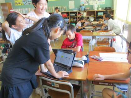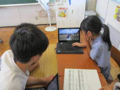 体育で撮影した自分の跳躍の動画をチームで確認し、話し合いながらそれぞれの課題を明確にしました。「早くポイトレしたい!」という声が聞こえてきました。