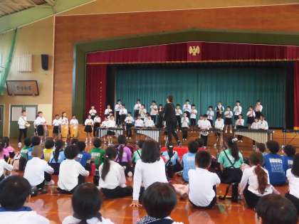 4・5年生は、呉羽小学校で行われた第6区域連合音楽会に参加しました。この日に向けて、休み時間や朝の時間を使って楽器の練習をしたり、みんなでよりよい合奏や合唱になるために見直したりしてきたことを、大勢の前で発表する場です。