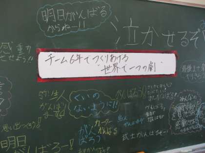 いよいよ明日、学習発表会本番です。泣いても笑っても一回きり。小学校生活最後の学習発表会、見る人たちに感動とみんなの思いを伝えましょう!