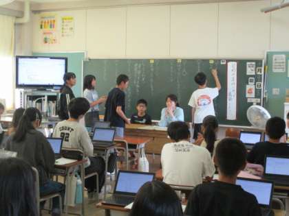 国語科「みんなが楽しく過ごすために」の学習では、議論に挑戦しています。それぞれが意見や考えをもち、より納得できる方向へと話を進めています。