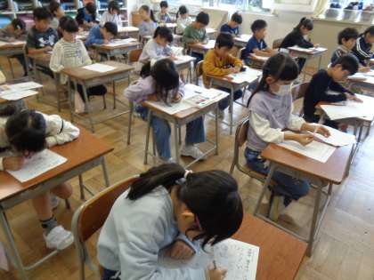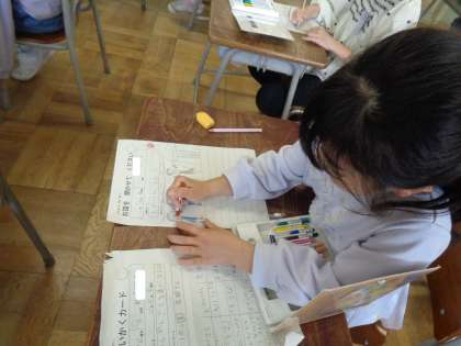 今日の生活科は、先日地域の方に聞いたお話をワークシートにまとめました。