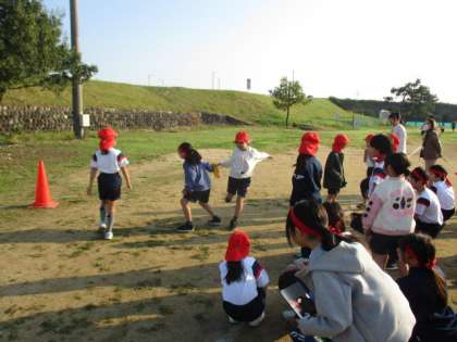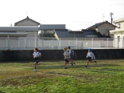 神明っ子はファミリーリレーマラソンに向けて、毎朝練習に励んでいます。たすきの受け渡しや走る順番の確認をしました。