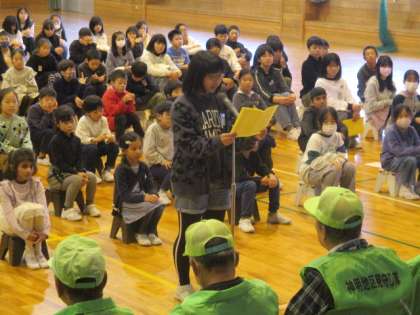 感謝の集いを開き、いつも大変お世話になっている交通指導員の方や見守り隊の方に感謝の気持ちを伝えました。これらも安全を見守ってくださるみなさんに、あいさつで感謝を伝えていきたいです。
