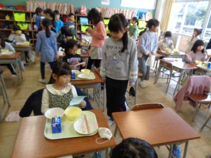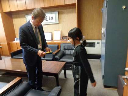 生活科で取り組んできた「ゴムで動くおもちゃ」のお店に、来週いよいよお客さんを招待します。今日は、1年生と職員室の先生に、招待状を届けました。