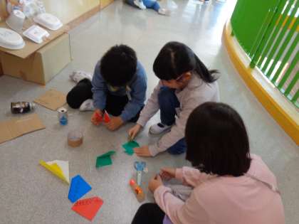 水曜日の「しんめいっ子 おもちゃフェスティバルへ ようこそ!」集会に向けて準備を進めています。