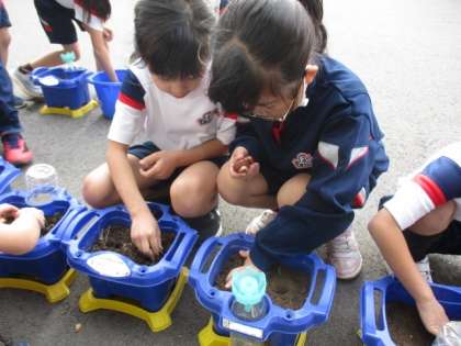あさがおを育てていた鉢にチューリップの球根を植えました。寒い時期にどのように育っていくのかを観察し、何色のチューリップが咲くのかを楽しみに待ちたいと思います。
