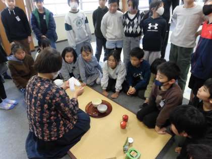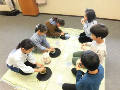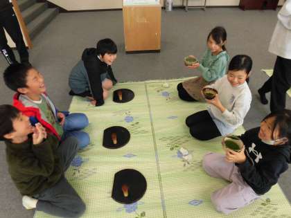 たてたお茶を友達に飲んでもらって楽しそうな子供達でした。美味しかったようで、笑顔があふれていました。