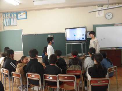 6年生は、総合的な学習の時間で自分が興味のある職業についてこれまで調べ、スライドにまとめてきました。この日は、5年生に向けて調べてきたことを発表しました。