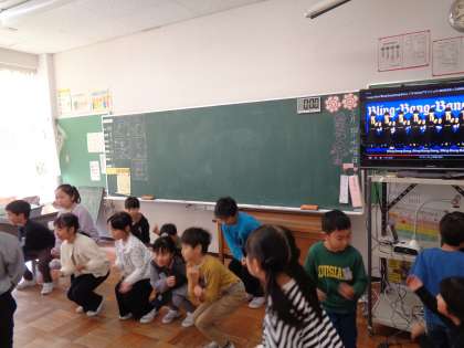 今日はダンス係さんが、ダンス集会を開いてくれました。ダンス係が、お手本になったり教えてくれたりしました。みんなで元気にダンスをしました。