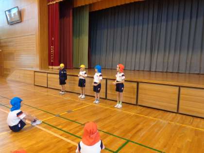 今日は、スポーツ係さんんが、スポーツ集会を開いてくれました。ボール2こを使うドッジボールをしました。インタビューコーナーでは、「係の人が、きちんと進めてくれた」「協力できた」と発表するなど、みんな目当てをもって、取り組んでいました。