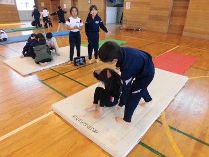 3年生 なわとび・マット運動 公開日 2024/12/20 更新日 2024/12/20 3年生 体育では、なわとびとマット運動に取り組んでいます。今まで出来なかった技にも挑戦し、グループで動画を撮って助言し合いながら練習しています。友達と励まし合ったり、できたときにみんなで喜んだりと素敵な姿がたくさん見られました。