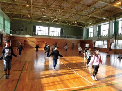 4年生 お楽しみ集会をしました2 公開日 2024/12/24 更新日 2024/12/24 4年生 体育館では、縄跳び対決とドッジボールをしました。縄跳び対決では、様々な跳び方で誰が1番長い時間跳べるかを競いました。長く跳んでいる友達のことを応援する声が飛び交っていました。またドッジボールでは、1度もボールを投げていない友達にボールを渡すなど、みんなが楽しく過ごせるように子供同士声を掛け合っていて、成長を感じました。