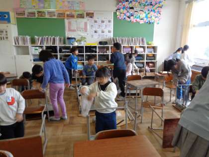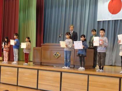 今日で、2学期の学習が終わりました。昨日は、みんなで教室の床をピカピカに水ぶきをしました。終業式の後の受賞紹介では、2年生から4人の子が紹介されました。教室でもお話しましたが、たくさんのことに挑戦し、できるようになったことが増えた2学期でした。みんな、本当によくがんばりました。