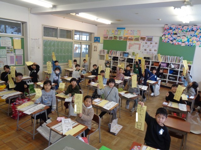 昨日まで、静まりかえっていた教室に、子供たちの元気な声がもどってきました。始業式のあとの書き初め大会ではみんな集中して、とてもきれいな字で書いていました。練習の成果が表れていました。いよいよ3学期がスタートしました。子供たちには、3年生の0学期であることをお話ししました。2年生のまとめをしっかりしていきたいと思います。