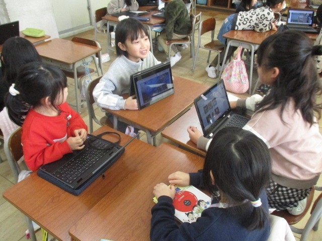 国語科「くわしくきこう」では、自分の好きな本や場所、生き物について友達に紹介し、聞いている人は詳しく聞きたいことを質問しました。「どんなところが好きですか」「どうして好きになったのですか」など相手の目を見て聞いていました。