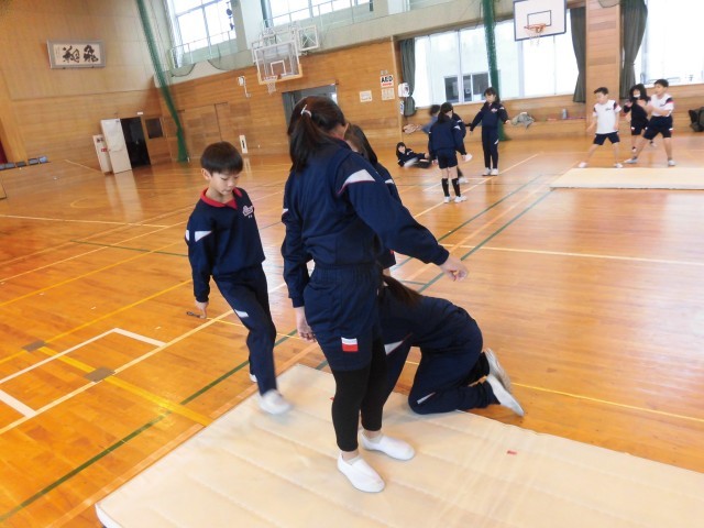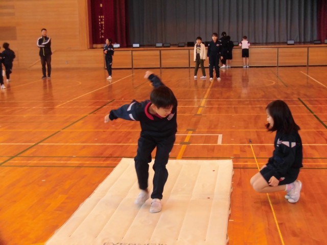 3年生 走り幅跳び 公開日 2025/01/17 更新日 2025/01/17 3年生 体育では走り幅跳びに挑戦しています。1cmでも長く跳ぶためにはどうしたらよいかを団で話合い、友達のよいところを見付けながら練習していました。