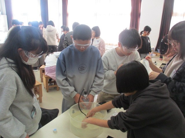 今日の理科の実験では、炭酸水に溶けているものを調べました。どの子どもも興味津々に取り組んでいました。