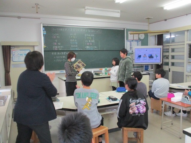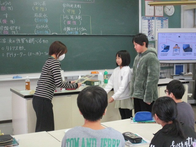 観察実験アシスタントさんが今日で最終日でした。6年生からは、感謝の色紙をプレゼントしました。理科の学習の準備や、分からない所を教えていただくなど、たくさんお世話になりました。本当にありがとうございました。