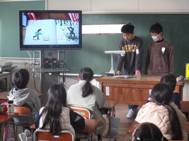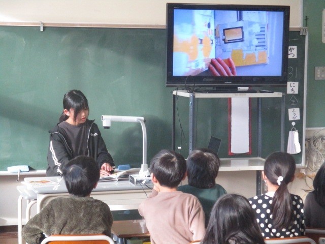 図書委員会では朝活動の時間に各クラスで読み聞かせを行いました。図書委員の子供たちは、学年に合わせて楽しんでもらえる本を選びました。聞いている子供たちは静かに集中して聞いていました。