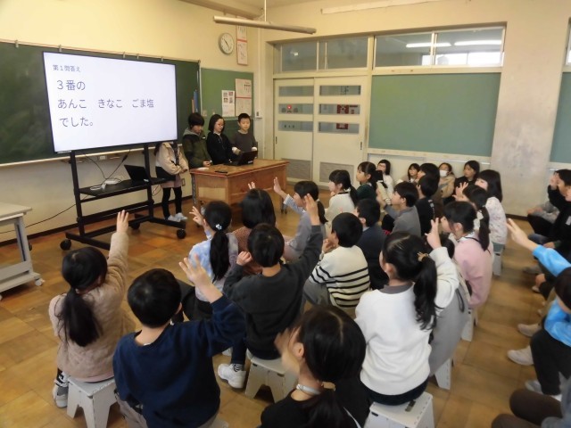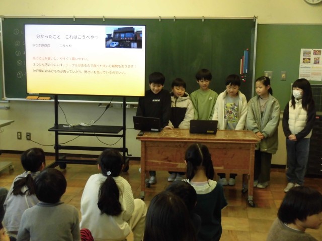 3年生 神明地区のステキを伝えよう! 公開日 2025/03/03 更新日 2025/03/03 3年生 総合的な学習の時間で調べた「神明地区のステキ」を2年生に発表しました。写真を使って分かりやすく説明したり、楽しめるようにクイズをつくったりと工夫しながら発表していました。
