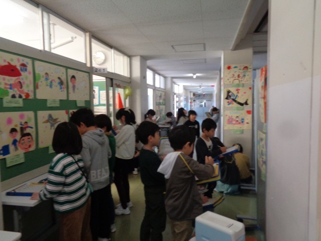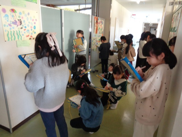 今日の図工は、「おはなしから うまれたよ」の作品鑑賞会をしました。1学期から繰り返し行ってきた鑑賞会ですが、鑑賞の場はだれ一人声を出さず、目と心で鑑賞できる2年生は、さすがですね!