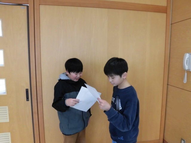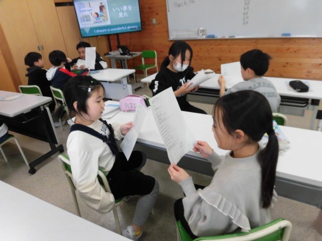 外国語活動では、自分の1日の生活を友達に手紙を書いて伝える活動をしました。練習を重ねて相手の目を見て伝えようとする子供達でした。