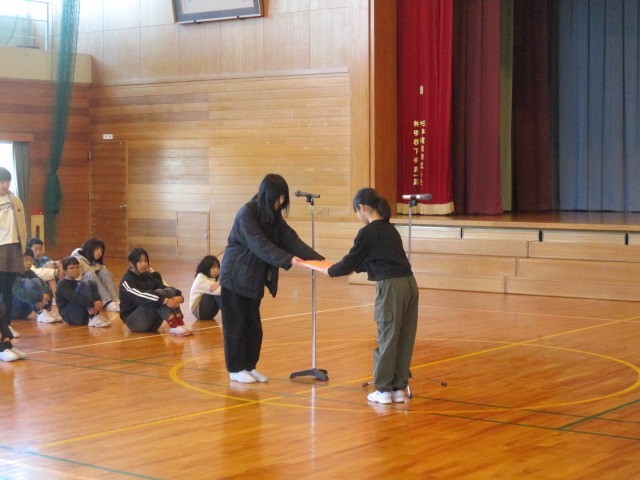児童会引き継ぎ式では、委員長から次期委員長への引き継ぎ、色団の引き継ぎを行いました。6年生がつくりあげてきた「チーム神明」を在校生がきっと引き継いでくれると信じています。