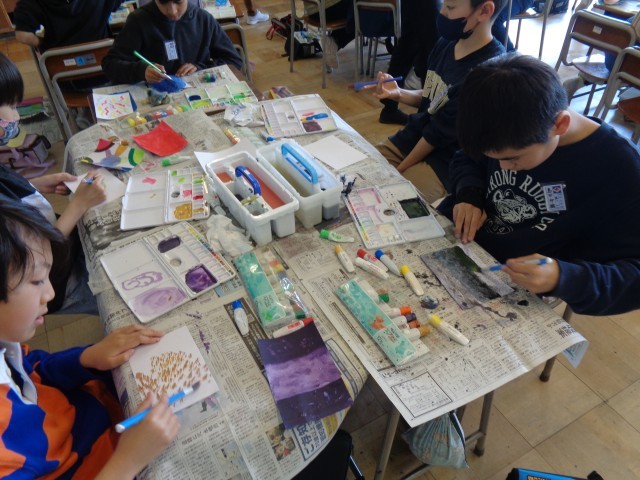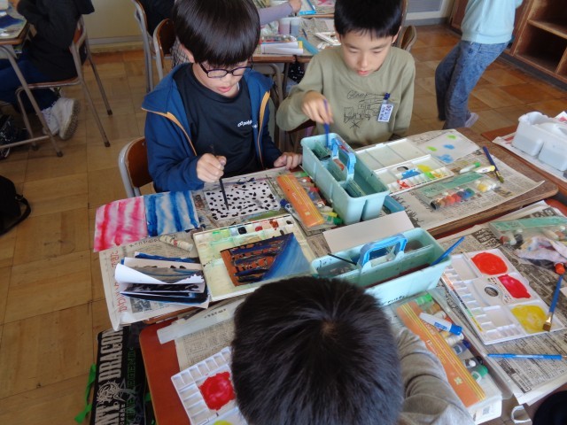 色の濃淡や線の形などを工夫して、楽しみながら描いていました。