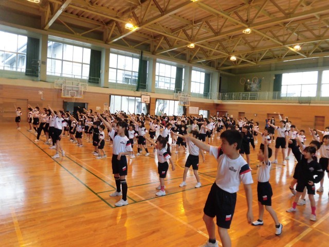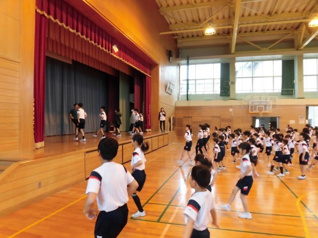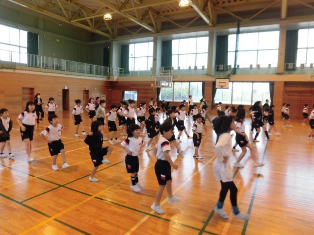 運動会で行う準備体操「やってみようダンス」の練習をしました!6年生がかっこいいお手本になっていました。指先までしっかり意識したり、元気なかけ声を出したりしており、やる気のあふれる神明っ子でした。