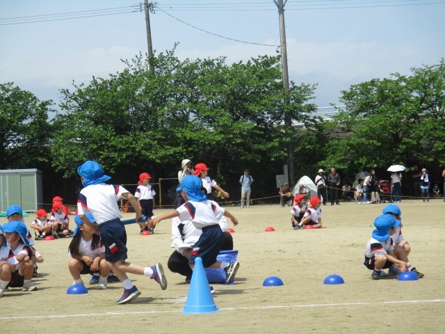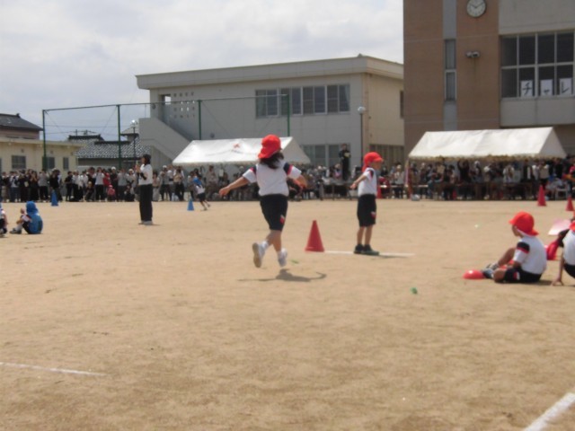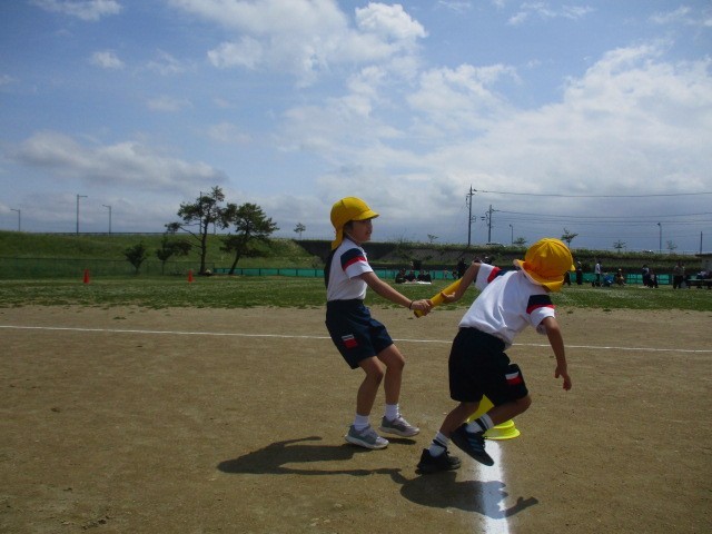 低学年キッズリレーの様子です。みんなでバトンを繋ぎ、頑張って走りきりました。