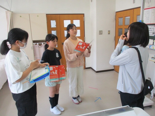 国語科「聞いて、考えを深めよう」では、話し方や聞き方に気を付けて先生方にインタビューする学習をしています。