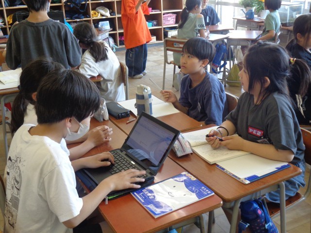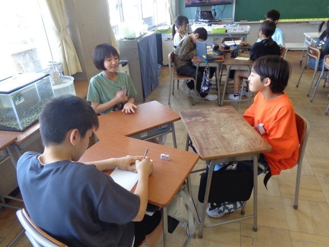 国語科では、インタビューを通して友達の人柄や魅力を引き出す学習をしています。