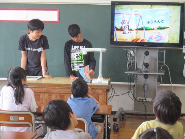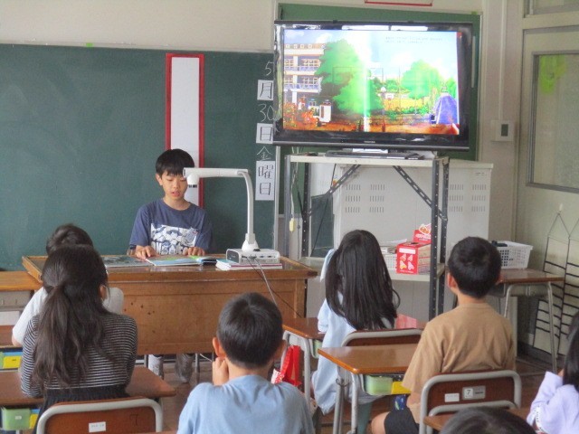 朝活動の時間に図書委員会による読み聞かせを行いました。どの教室でも図書委員が読む話を静かに聞いていました。