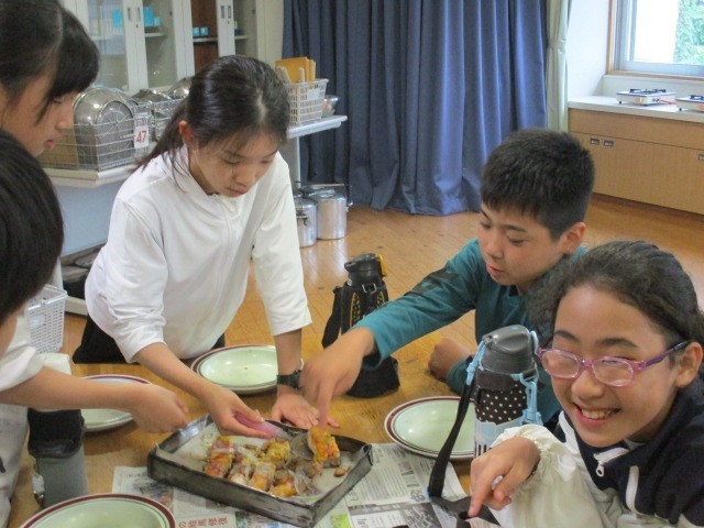 6年生は、1泊2日の宿泊学習に行ってきました。目当ての「One Team」を目指して、班や色団で協力したり、自分の役割に責任をもって取り組んだりする姿が素敵でした。(写真は、出発式、入所式、野外炊飯のピザ作りの様子です。)