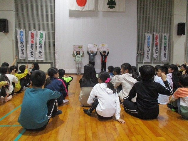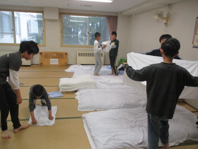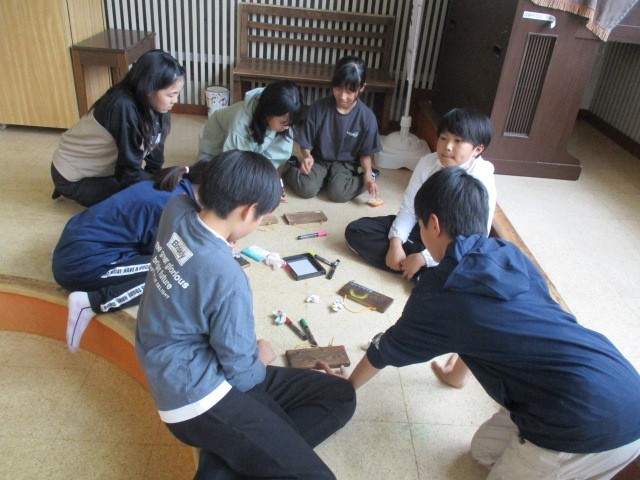 焼き板作りでは、次の友達に「バーナー、渡すよ?気を付けて。」と優しく声を掛け合ったり、ベッドメイキングではペアで協力しながら進めるなど、自然と助け合いが生まれていました。夕べの集いでは、他校の前でも堂々と神明小学校のことを紹介してくれました。
