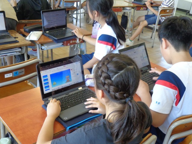 友達のスライド発表を真剣に聞いたり、よさを伝えるコメントをしたりするなど、友達の学びから自分の学びを見直していました。