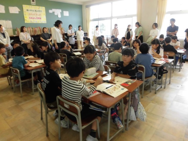 3年生は、時を表す漢字を見つける活動を真剣にしています。4年生は、分度器の使い方を学んでいます。どの子も課題をしっかりと書き真剣に取り組んでいました。