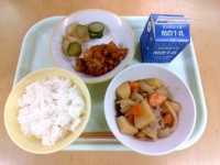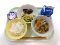 12月17日(水)の給食ごはん、牛乳、ふくらぎの照り焼き、ゆず和え、ほうとう鍋 ...