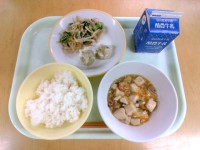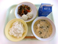 12月4日(木)の給食ごはん、牛乳、コーンしゅうまい、海藻サラダ、マーボー豆腐 ...